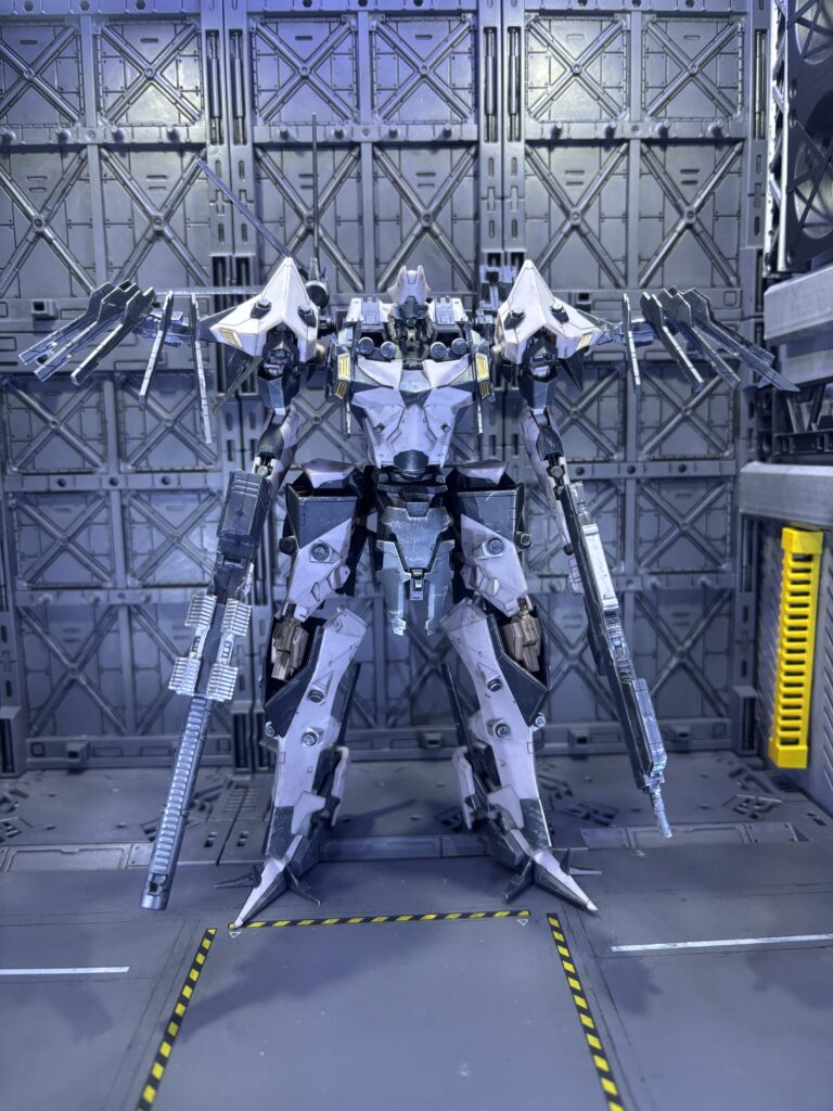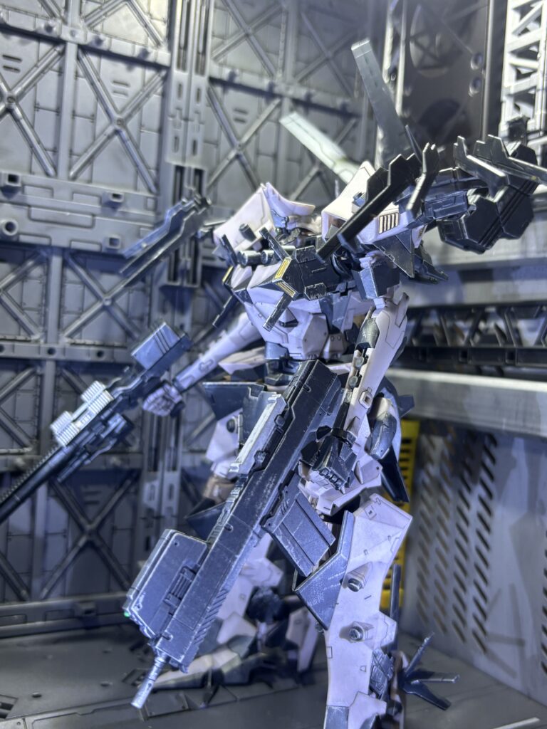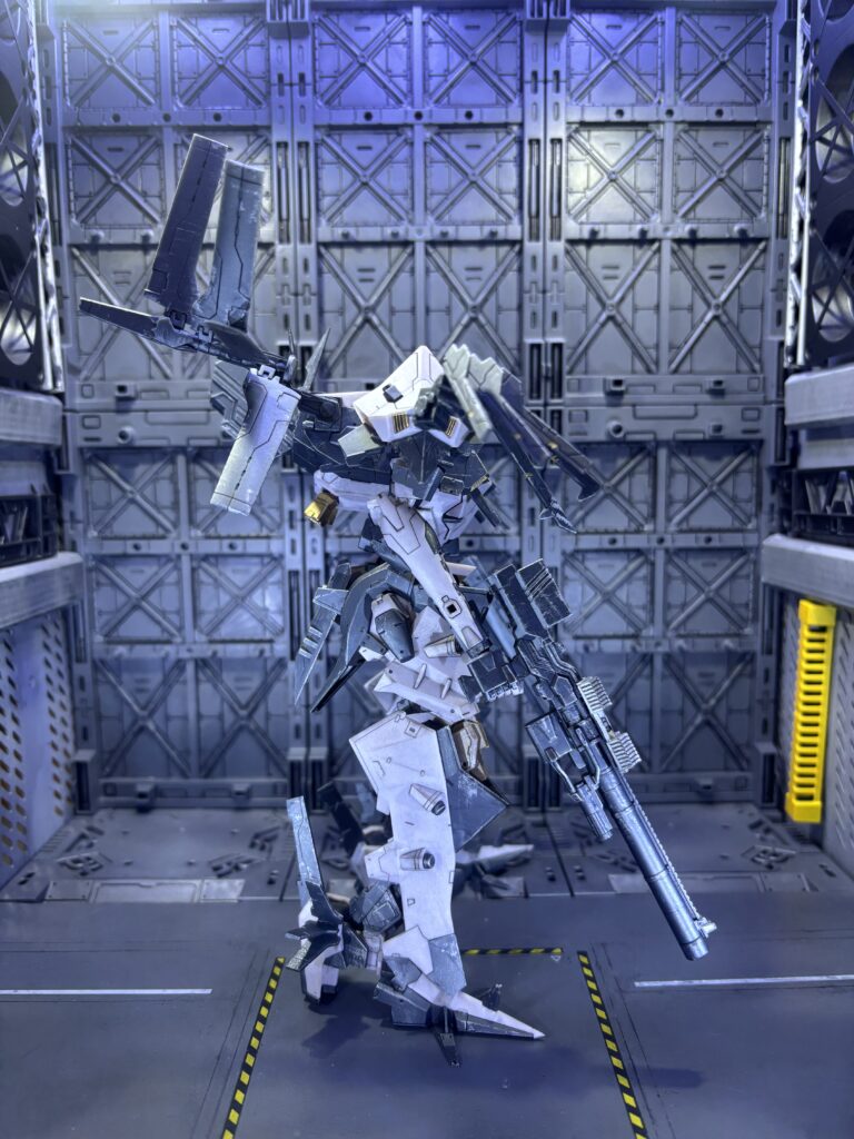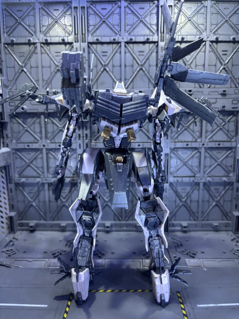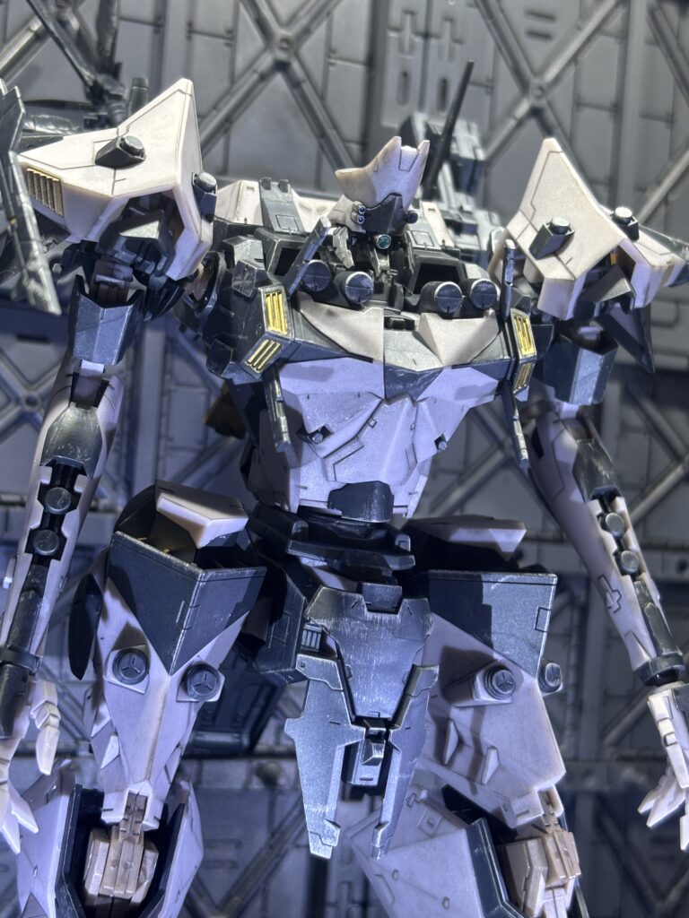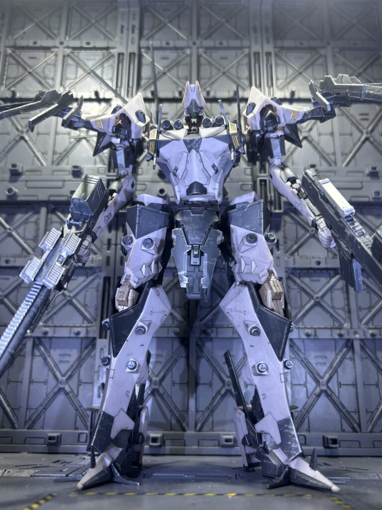 コトブキヤのアーマードコアシリーズはパーツ分割が細かく、モールドのラインも多いので艶消し、スミ入れするだけでもグッとかっこよくなります。