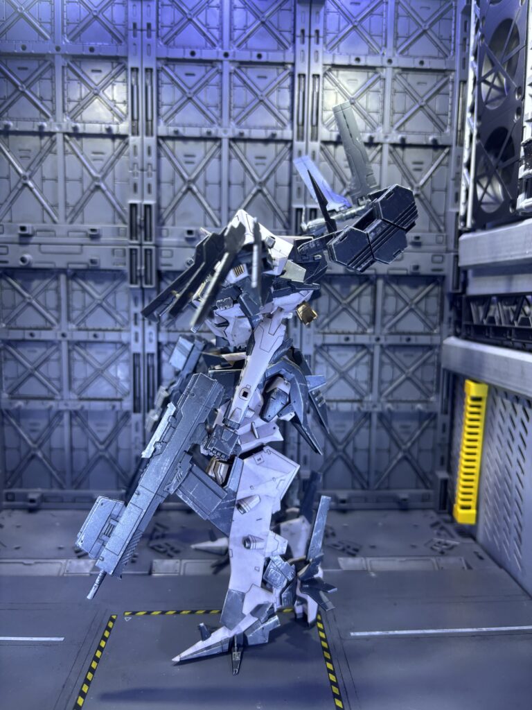 アンビエントはアーマードコア作品の中でも好きなデザインです。特殊な形のレーダー、ECM発生器、スタビライザー、どれも独特なデザインでこの機体の個性にとてもマッチしています。
