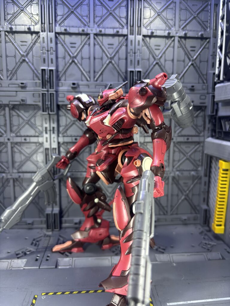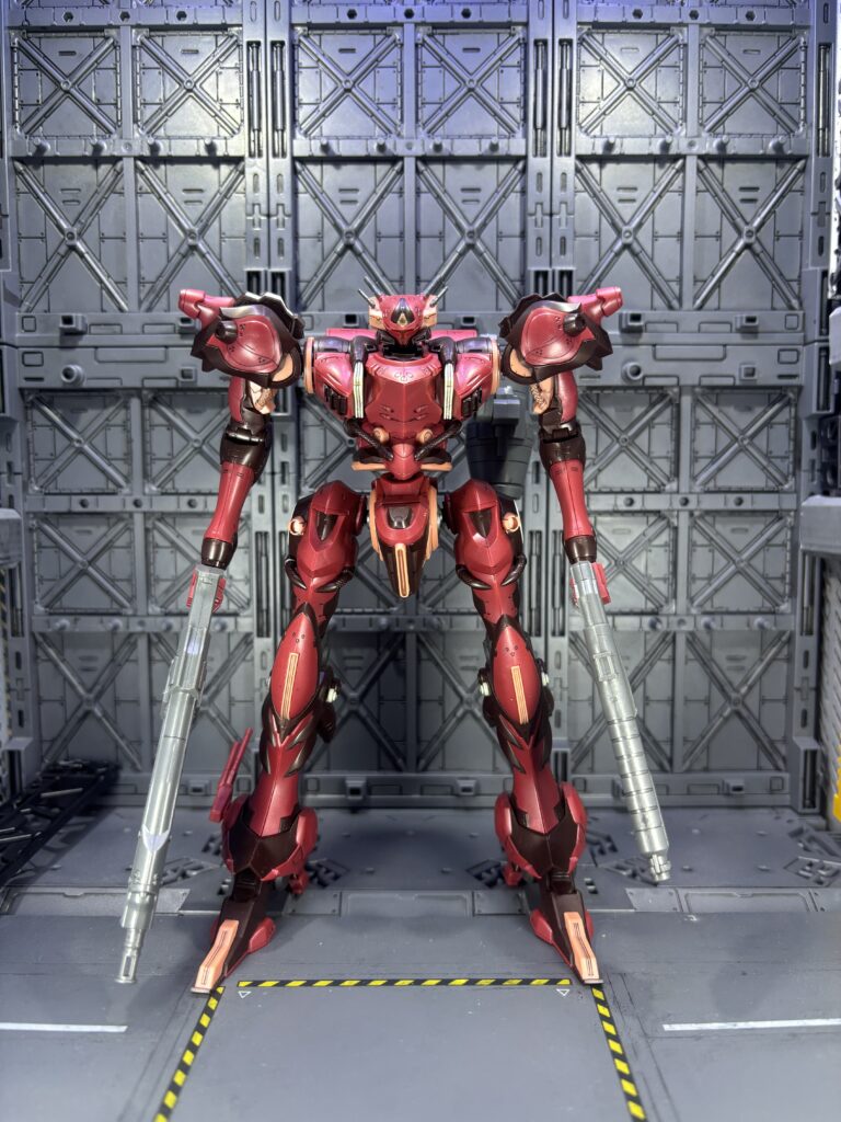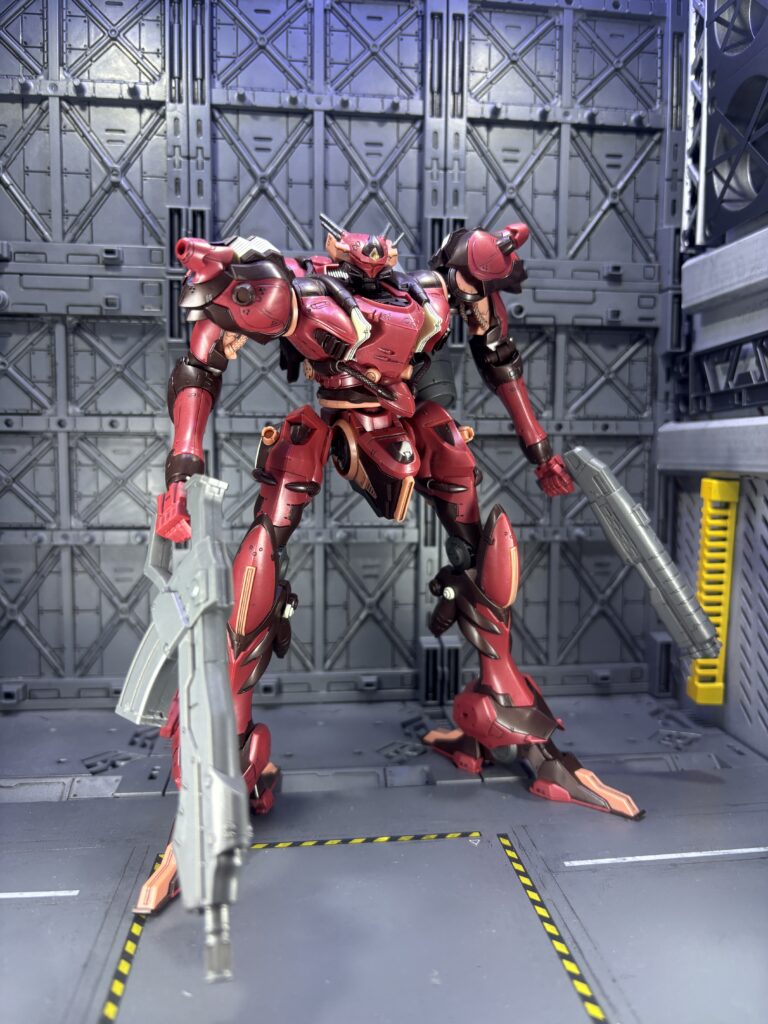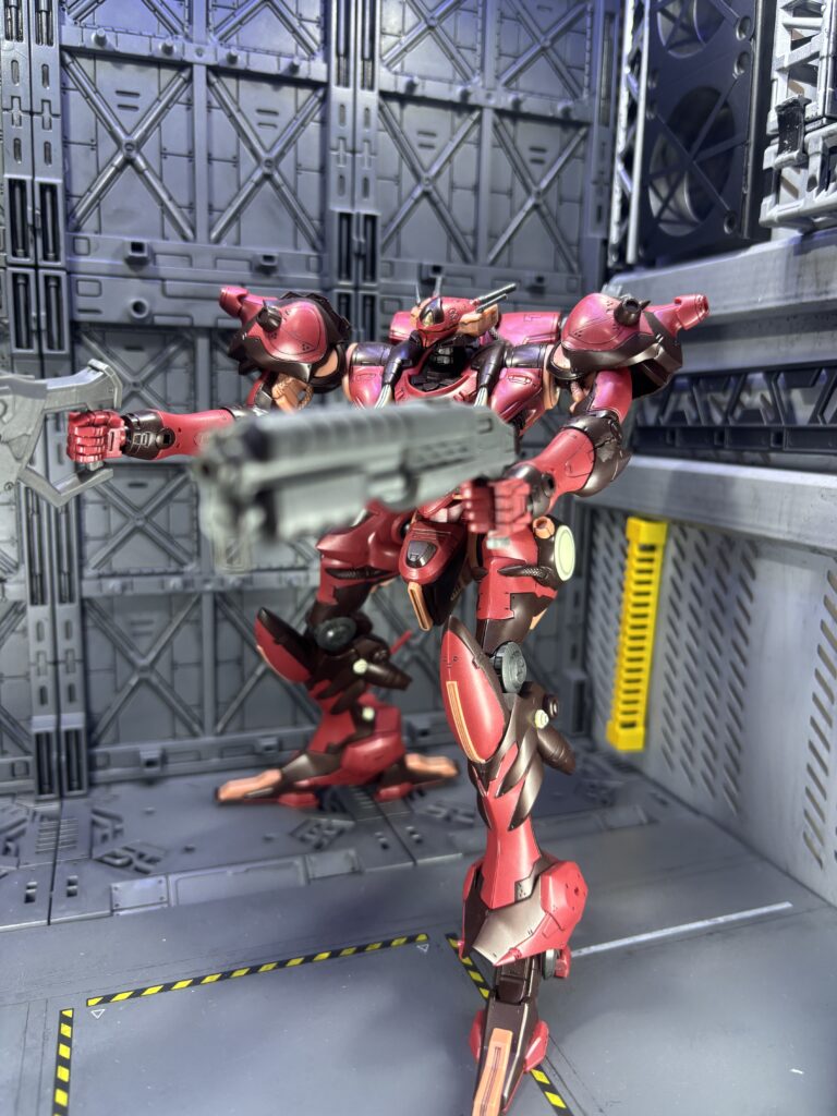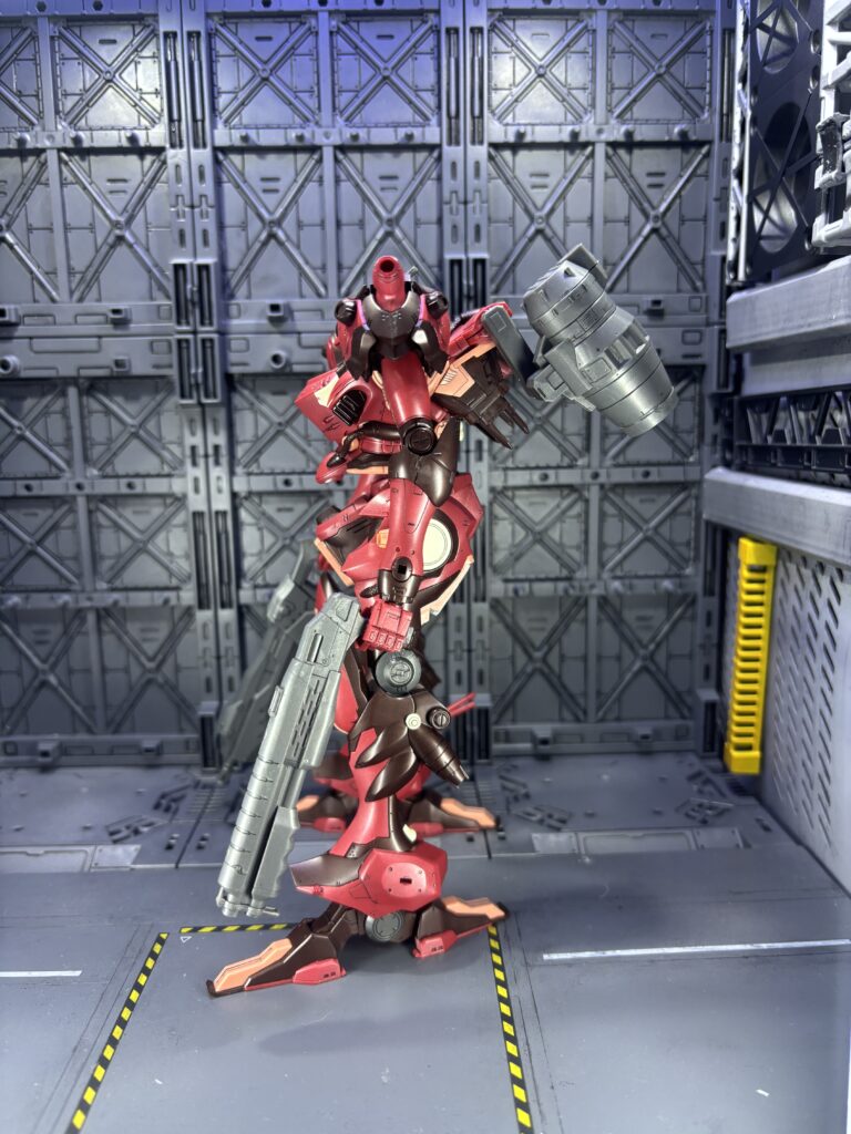 このキットは細身のデザインのためアーマードコアキットの中でも可動域の広めのキットでありポージングがしやすい機体だと思います。私も何度もポージングして遊んでしまいました。