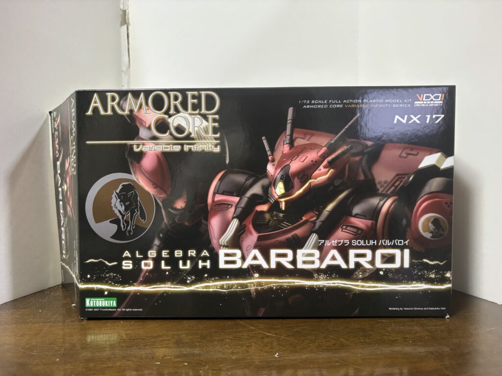 今回はコトブキヤのプラモデルの紹介です。アーマードコアシリーズからアルゼブラ社SOLUHベースのバルバロイです。このキットは2024年再販分です。